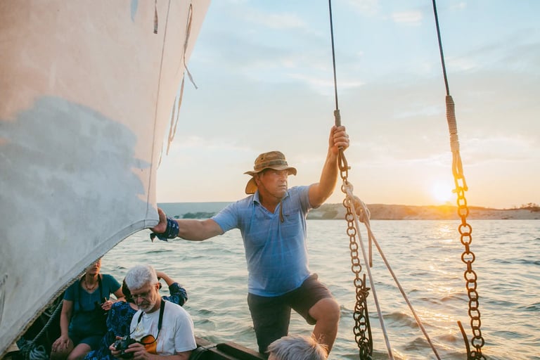 Sezono metu dėl artimiausio plaukimo patogiausia ateiti į Nidos usostą prie kurėno "Kuršis", arba paskambinti Aurelijui. Jei tuo metu esame mariose, perskambinsime, kai tik galėsime. Kurybinį sumanymą arba renginio datą geriausia derinti iš anksto el. paštu arba telefonu. Daugiau informacijos ir mūsų kontaktus rasite puslapyje "Apie mus".